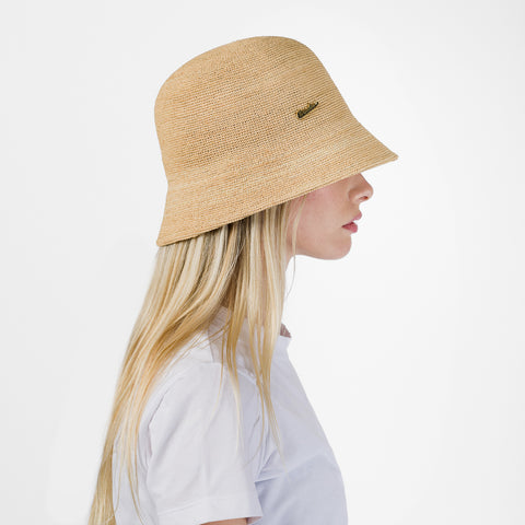 Lancaster Paris large cotton bucket bag with cowhide trim, internal zip pocket and double simple internal pocket.
