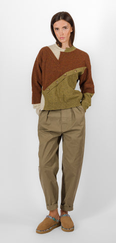 Moschino diagonal cotton jacket with corduroy collar, embroidered patches on the elbows and small leather label with logo, contrasting collar, two pockets on the front with flap and snap buttons, front closure with snap buttons, internal coulisse to adjust the fit.