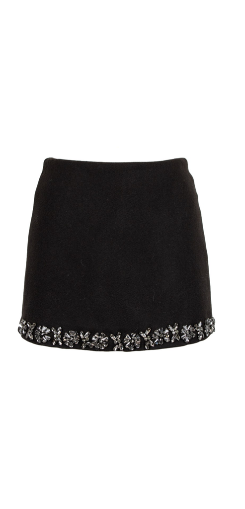 Odì Odì mini A-line skirt with shorts, jewel flower application with rhinestones.