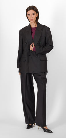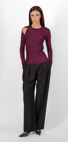 Victoria Beckham pantalone a vita alta, pieghe sul davanti e freccette sul retro, rivestimento interno in rete elettrica, tasca laterale inserita nella cucitura, tasche posteriori a getto singolo, passante per cintura extra lungo con punto rosso a contrasto sul retro.