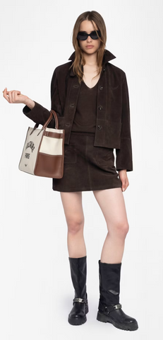 Zadig & Voltaire giacca corta in pelle scamosciata, colletto classico, chiusura con bottoni semplice, tasche a filetto, firma dell'ala sul davanti.