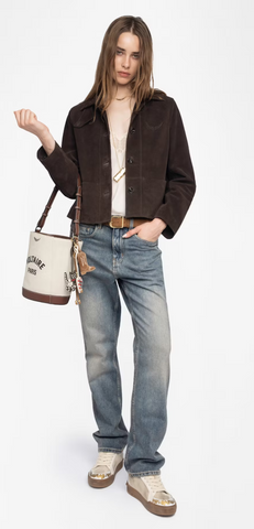 Zadig & Voltaire pantaloni slim in pelle stropicciata stretch, chiusura con bottone e zip e passanti per cintura in vita, cinque tasche e jacron ad ali sul retro.