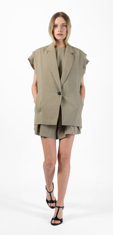 Iro top con scollatura rotonda, dettagli arricciati sul davanti e sul retro, dettaglio piegato sul davanti fissato con bottoni e orlo con effetto patta, parte superiore strutturata, senza maniche, orlo con effetto patta.