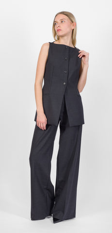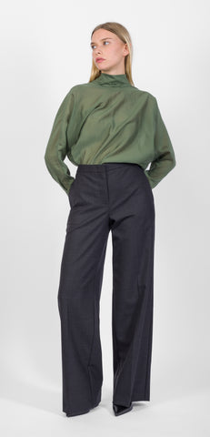 Mercì pantalone a trombetta, chiusura con zip e gancio nascosto.