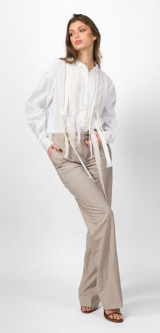 Moschino giacca in panno di lana check, due tasche a patta, spacco sul retro, bottoni sul pulso con dettaglio gemello.