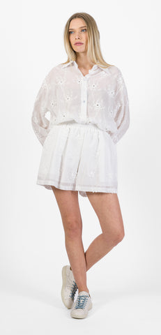Oui Odile camicia over con ricami floreali tono su tono, dettagli brillanti, chiusura con bottoni.
