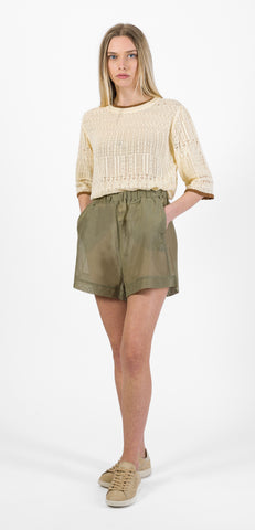 Phiili maglia in lavorazione maglia, bordino color tabacco, maniche 3/4.