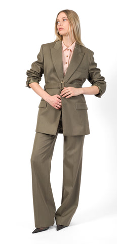 Victoria Beckham gonna midi realizzata in misto, delicato drappeggio intorno alla vita, cintura cadente, zip laterale nascosta.