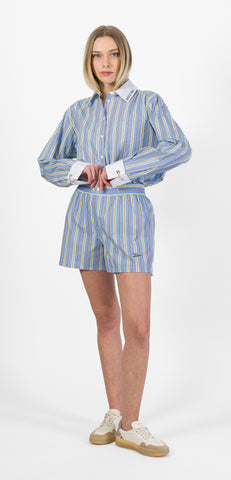 Zadig & Voltaire camicia oversize in popeline a righe con ricamo, collo e polsini a contrasto, chiusura con bottoni, tasca applicata.