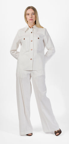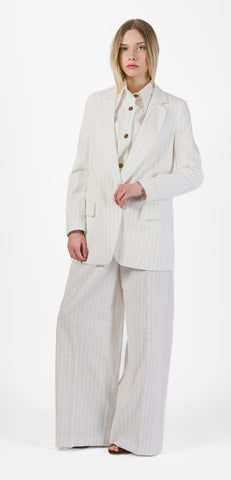 Mercì Italia wide striped trousers, hidden zip and hook closure, two front welt pockets, two back patch pockets.