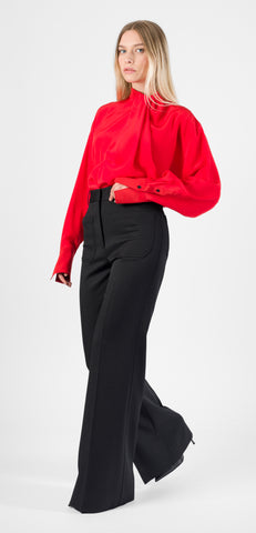 Victoria Beckham button-up collar shirt, back pleat, button-up cuff, asymmetrical hem length .