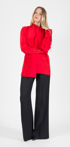 Victoria Beckham jacket with front button placket, buttoned sleeve bottom, rear center slit, two front patch pockets.